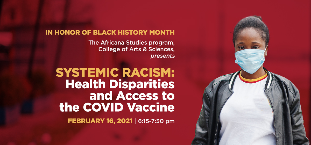 In partnership with South Florida People of Color, Barry’s Africana Studies program, College of Arts & Sciences, presents a Black History Month speaker series. It will explore the history of systemic racism in the medical community and how it results in health disparities in the Black community and distrust of medical systems. Medical expert panelists will also discuss COVID-19 vaccine facts and Black communities’ access to the vaccine.