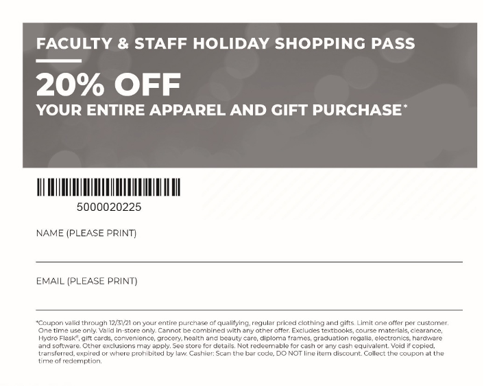 The BarryU Bookstore is offering a 20% off holiday shopping pass for faculty and staff until the end of December!